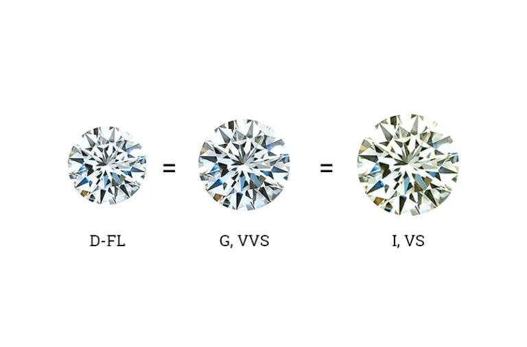 A smaller diamond with D-F color and FL-IF clarity will cost approximately equal to a larger diamond with H-J color and VS1-SI2 clarity.