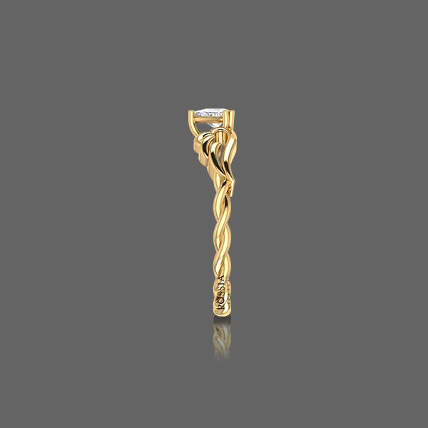 Embrace your wondrous love with this graceful intertwined swirl band. Beautifully crafted in 2.330 grams of gold with a spectacular Princess Cut diamond weighing 0.30 carat set with prong setting.