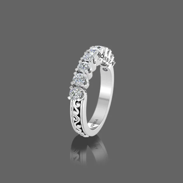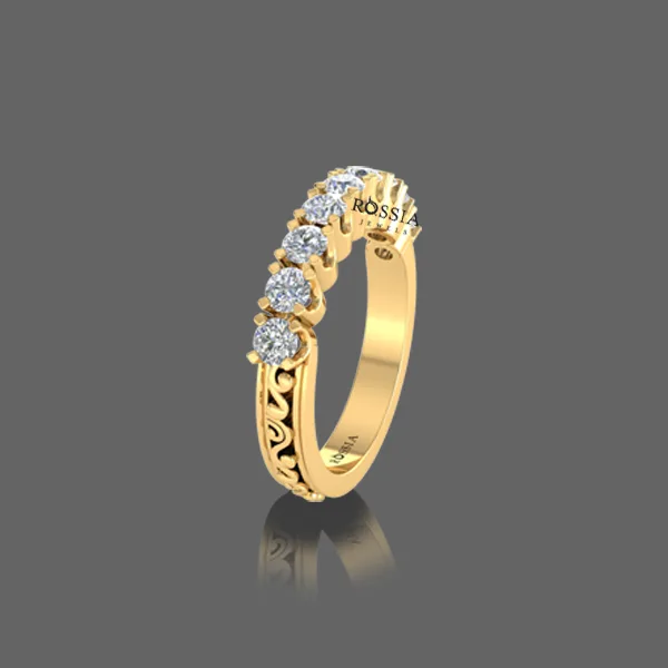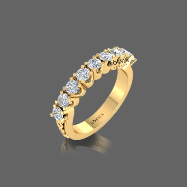 Enjoy the minimalism with this diamond band Go solo or stack it up with your solitaire ring to add a hint of panache to your outstanding style. Intricately handcrafted in 4.018 grams of gold with 9 Round Cut diamonds weighing 0.50 carat set with prong setting.