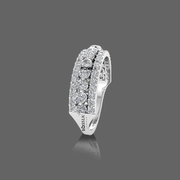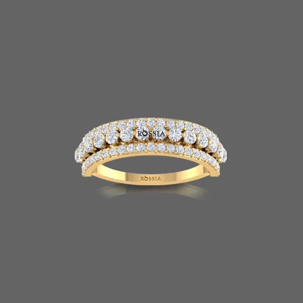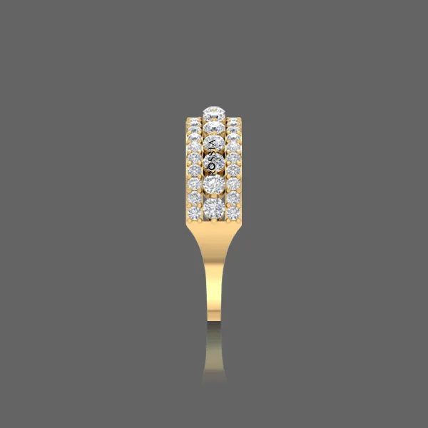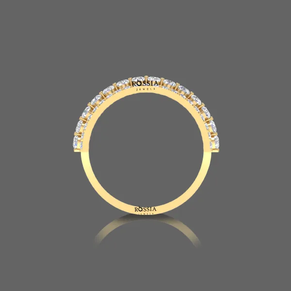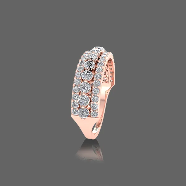Chic Dainty Diamond Ring to up you accessories game Pump up the fashion volume with this fabulous bling ring. Artfully handcrafted in 3.272 grams of gold with 56 Round Cut diamonds weighing 0.99 carat exclusively set with prong setting.