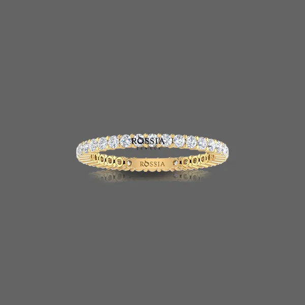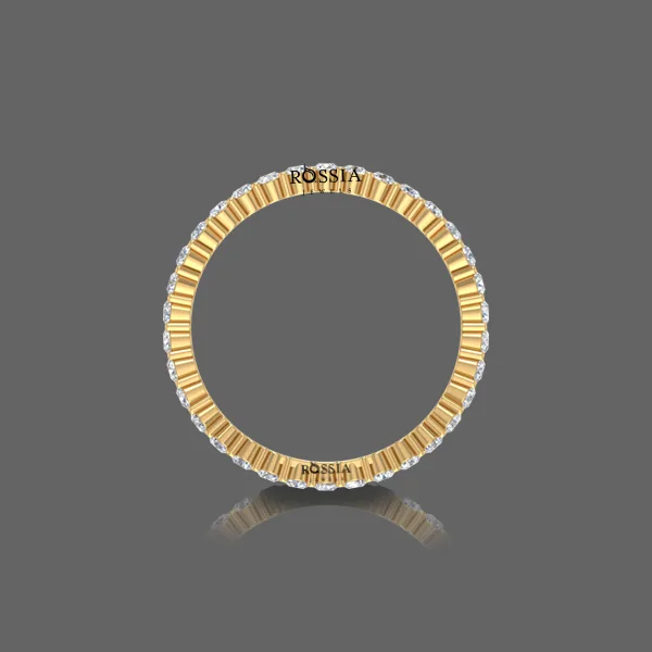 Glowing lab diamond wedding band to etch all your precious moments. Add a classic grandeur with this wedding band. Elegantly handcrafted in 1.578 grams of gold with 34 Round Cut diamonds weighing 0.75 carat exclusively set with prong setting.