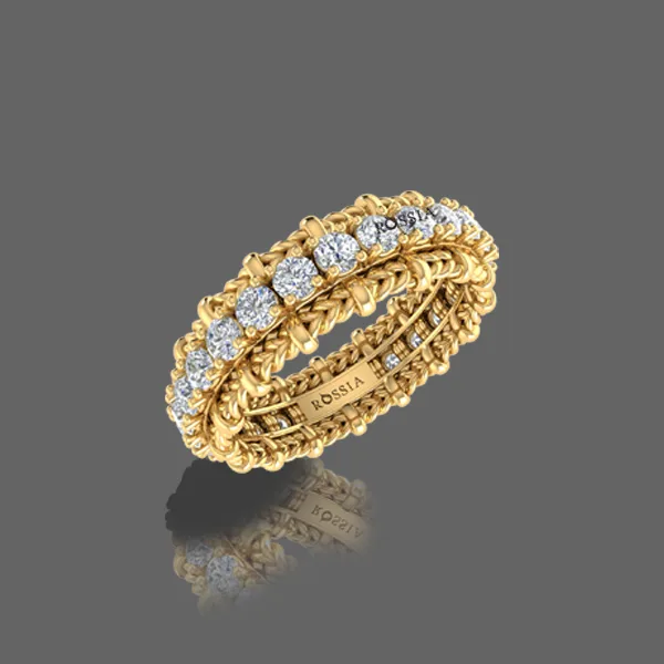 Be it for everyday use or special occasions this band will complement you at ease Its diamonds evoke the enchanting beauty of dreams, making every moment with your loved one feel like a fairy-tale. Artfully handcrafted in 6.669 grams of gold with 26 round cut lab grown diamonds weighing 1.35 carat beautifully set with prong setting.