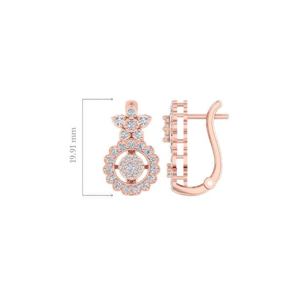 Mysterious earrings with captivating diamonds that echo the wearer’s secrets. Artfully handcrafted in 7.366 grams of gold with 60 Round Cut diamonds weighing 0.77 carat set with prong setting.