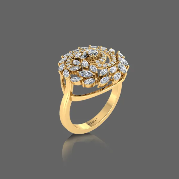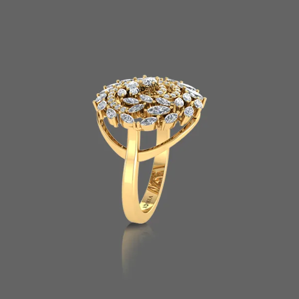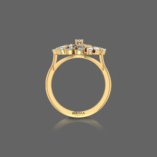 Whether you’re marking a special occasion or simply indulging in a luxurious treat, the Glimmering Frost Sparkling Diamond Ring is a perfect choice. Its timeless design ensures it will be cherished for years to come, making it an ideal addition to any jewellery collection. Intricately handcrafted in 6.987grams of gold with 1 Round and Marquise Cut diamond weighing 0.28 carat and Round and Marquise Cut Accent diamonds weighing is 0.63 with prong setting.