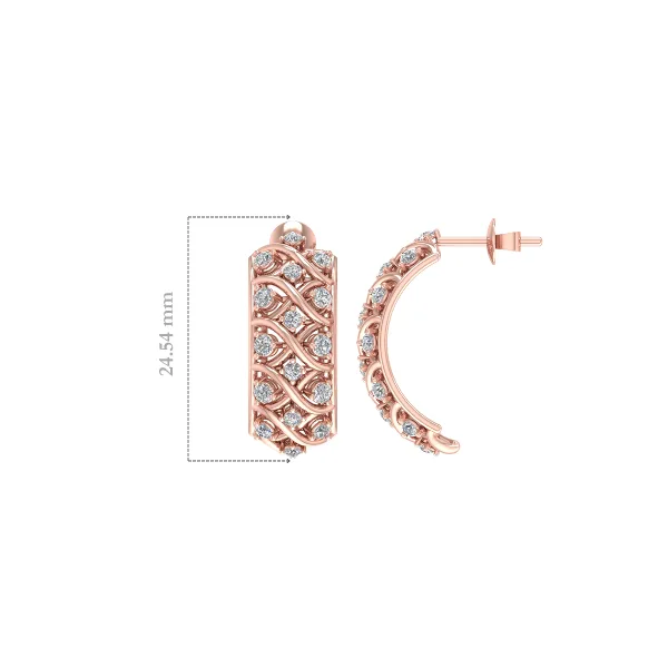 Opulent and luxurious, these diamond hoops are a statement of your refined taste. Alluringly handcrafted in 7.109 grams of gold with 32 Round Cut diamonds weighing 1.04 carat brilliantly set with Prong setting.