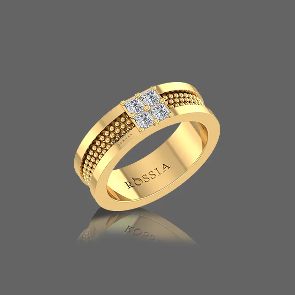 Leave a legacy of love with this ring, where four princess-cut diamonds symbolize the enduring nature of your commitment. Elegantly handcrafted in 11.517 grams of gold with 4 princess cut diamond weighing 0.40 carat exclusively set with Prong setting.