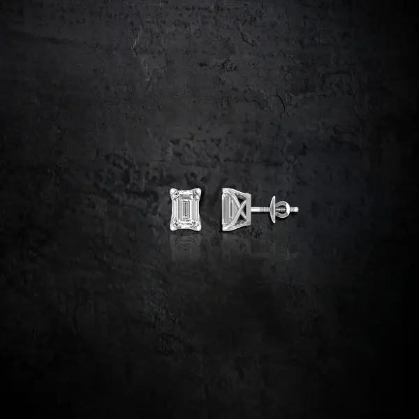 Elevate your everyday elegance with these stunning Emerald Cut lab diamond earring studs.