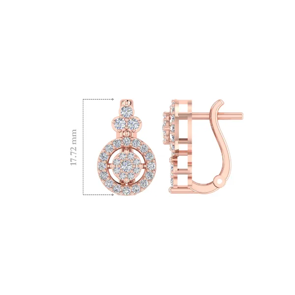 Earrings that evoke a sense of peace and tranquillity, bringing a calm and serene aura. Meticulously crafted in 6.279 grams of gold with 56 Round Cut diamonds weighing 0.94 carat beautifully set with prong setting.