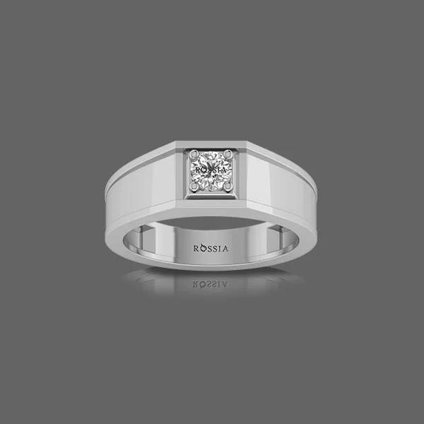 Encircle his ring finger with the remarkable brilliance of this solitaire ring Let your individuality shine through this sparkling solitaire ring. Brilliantly handcrafted in 8.216 grams of gold studded with 0.30 carat round cut solitaire diamond in the center set with prong setting.