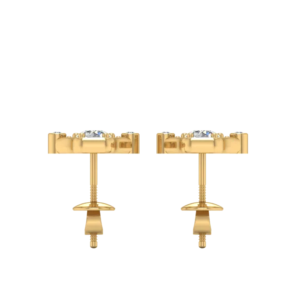 Elevate your style with The Charming Crown Earrings, meticulously crafted to add a touch of sophistication to any ensemble. Designed with modern elegance in mind, these earrings redefine classic masculinity with their sleek silhouette and refined details. Intricately handcrafted in 1.663 grams of gold with 2 Round Cut pointer diamond weighing 0.40 carat brilliantly set with prong setting and accented with Round Cut diamonds weighing 0.6 carat with Bezel Setting.