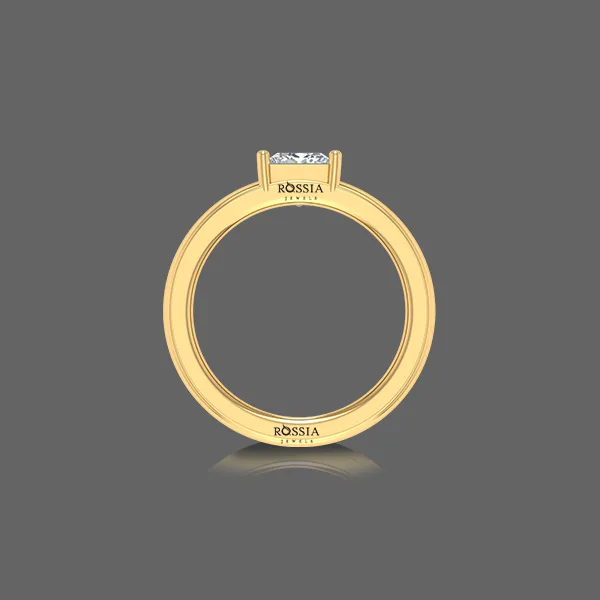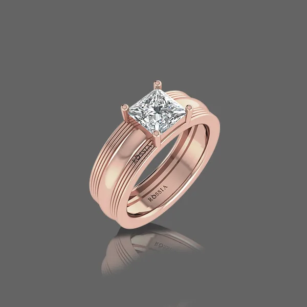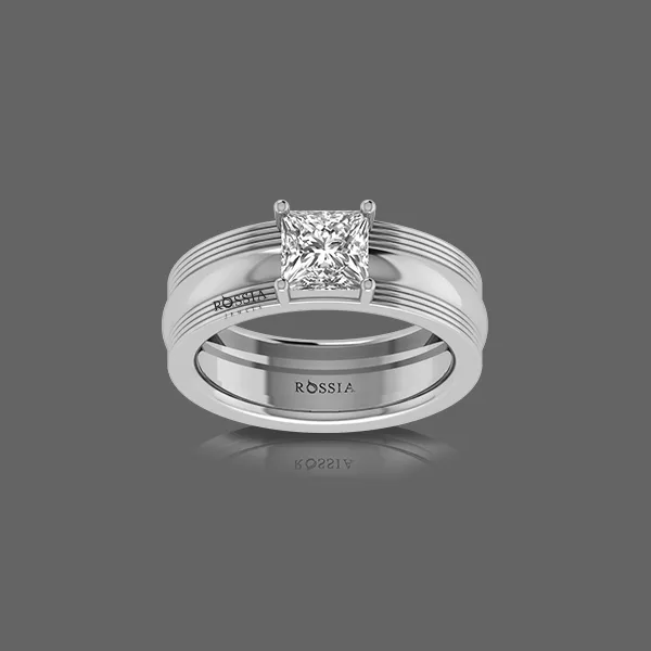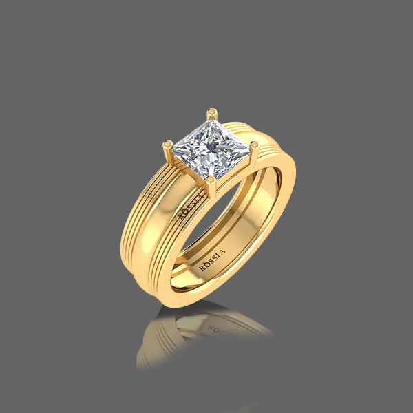 A modern take on the classic lab grown diamond men’s band. Meticulously handcrafted in 10.429 grams of gold with a sparkling Princess Cut solitaire diamond weighing 1.720 carat set with bezel setting.